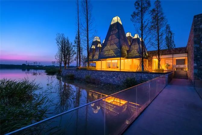 【事例】溧阳汾湖高新区曲水善湾项目。曲水善湾位于示范园区先行启动区内的汾湖高新区元荡村、三好村、东联村,项目范围约3.3万亩,核心区约6600亩。项目借助所在地钟家荡自然自然生态本底,使用乡土建筑材料、利用与环境相融合的设计元素,最大程度将村庄改造开发与自然自然生态相结合,实现“优化乡村空间、共融共生共享”目标。2022年,项目建筑单体的春晓 • 水杉居摘得建筑界的“奥斯卡奖”Architizer A+Awards 专业评审和公众选择两项桂冠,为打造示范园区自然生态优势转化特色空间奠定了基础。