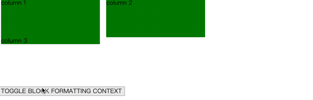 三个正常文件格式流的block原素可能被三个float原素覆盖,挤占正常文件格式流,因此可以设置三个原素的float、display、position值等方式促发BFC,以阻止被自由浮动箱子覆盖。