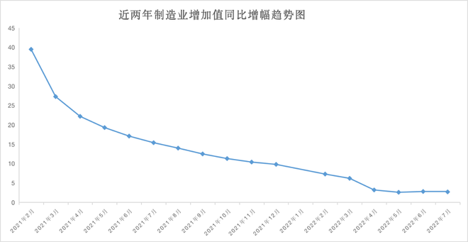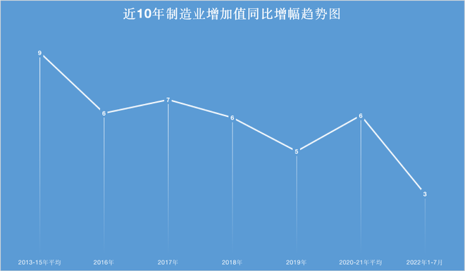 看见两条快速大幅下滑的抛物线,2022年4-7月工业产值降幅为3%,估算今年的工业产值降幅有可能落到3%,较之2020-21年平均数6%,3%就相等于打入冷宫。