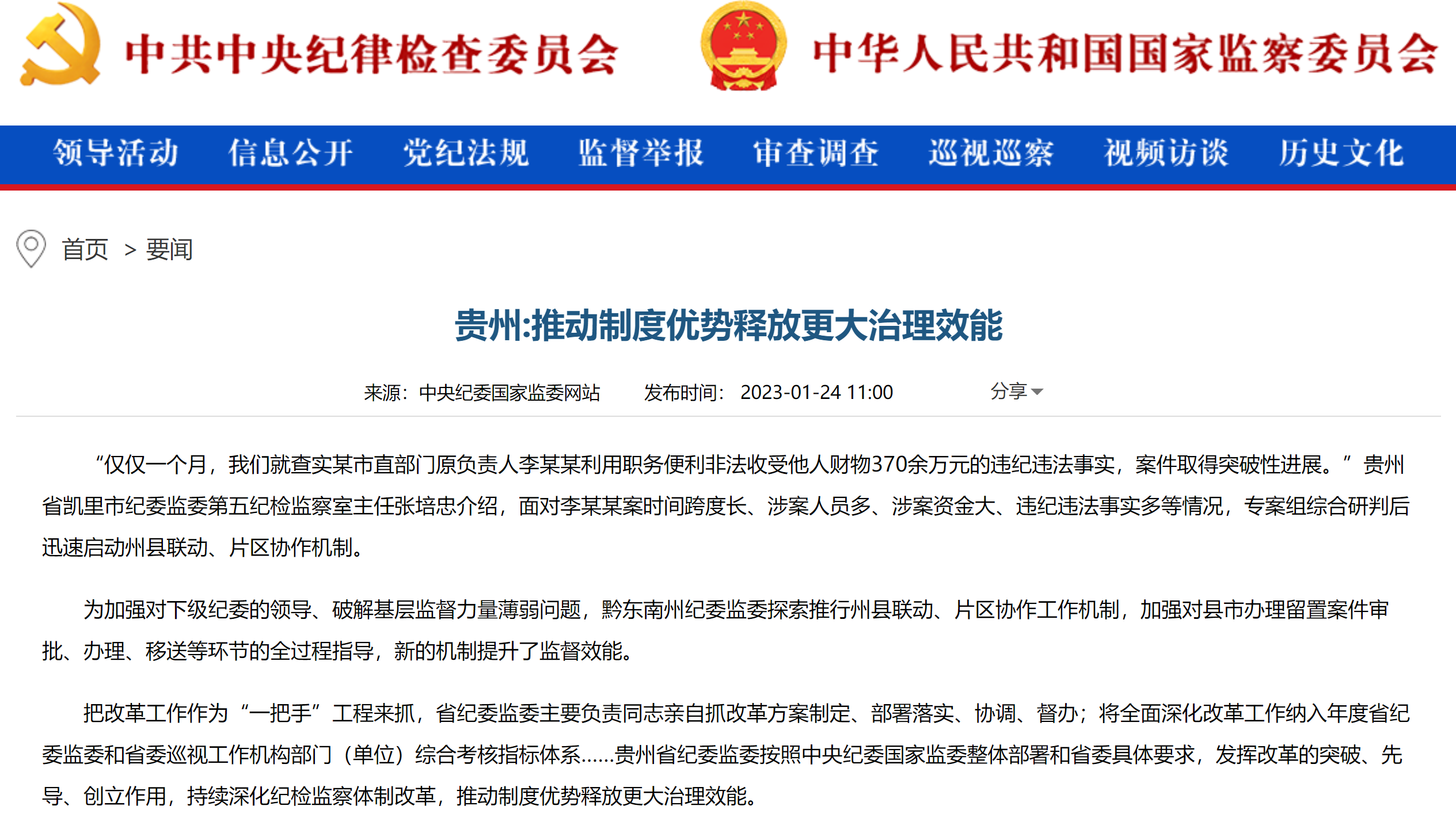 把体制改革组织工作作为“党委人员”工程来抓,政法委监察委员主要职能部门负责人亲自抓体制改革方案制订、布署全面落实、协调、督办;将全面性推进体制改革组织工作列入年度政法委监察委员和省政府巡视组织工作政府机构职能部门(基层单位)综合性考核评价指标……贵州政法委监察委员按照中央纪检国家监察委员整体布署和省政府具体要求,发挥体制改革的突破、先导、创立作用,稳步推进纪检体制改革,促进管理制度竞争优势释放出来Villamblard环境治理效率。