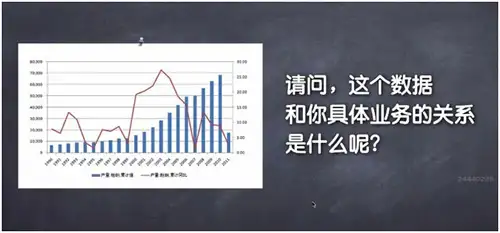 很多人在做计划的时候,都会去找一些这样看起来高大尚的柱状图,这些图看起来好像跟你的产品销售业务很有关系,可以为你的计划提供一些依据。可是你问下自己:这个统计数据和你具体内容产品销售业务的关系是甚么呢?相信你也说不出两个1.2.3.4来,因为这些大统计数据对你本身的产品销售业务是没用的。