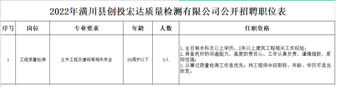 参见附带1《2022年安阳市股权投资台积产品质量检测股份有限子公司申明招工职务表》。