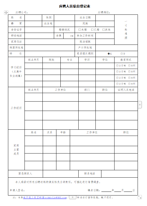 本次招工通过安阳市政府网站等渠道发布招工报告书,应聘人员需下载附带2《应聘相关人员信息登记表》,填写完整后发送到邮箱cthdzljc@163.com。