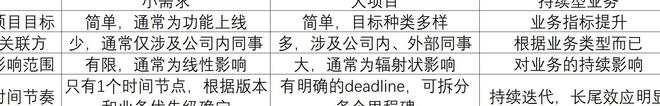 笔者将工程项目分为小需求、大工程项目和持续型业务。