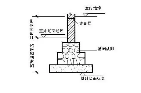 此基础埋深是指从室外内部结构设计方砖至此基础正方形的水平线。