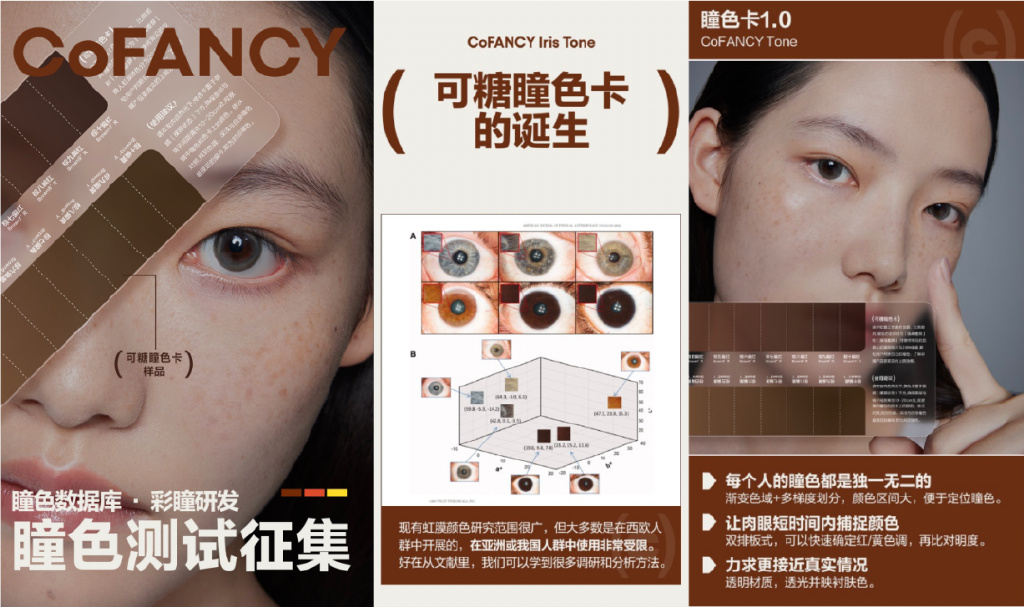 这套「瞳色卡」的建立是从使用者的使用市场需求出发,帮助使用者更好地了解自己的瞳色和市场需求,从而更好的选择到适配的商品。