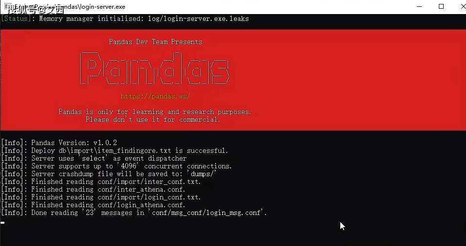 全部校对完后pandas文件会生成几个文件分别是char-server.exe、csv2yaml.exe、login-server.exe、mapcache.exe、map-server.exe