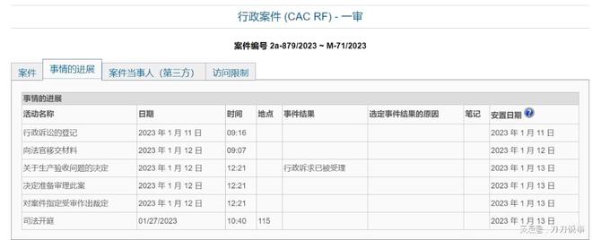 现阶段,高等法院已立案,刑事案件重大进展重要信息表明,高等法院将在1月27日开庭审理。