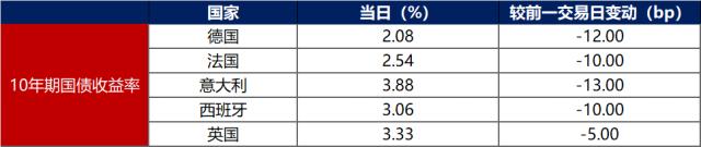 1月17日,主要就欧洲经济体10年期国债基准利率两极化急剧上行。其中,德国10年期国债基准利率上行12bp至2.08%,法国、意大利、西班牙、英国10年期国债基准利率分别上行10bp、13bp、10bp和5bp。