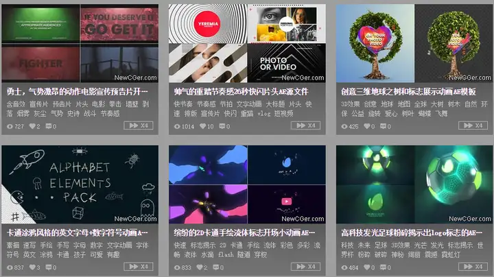 打开Motion Graphics 专栏后,你能发现有各种类型的动画素材可供你下载: