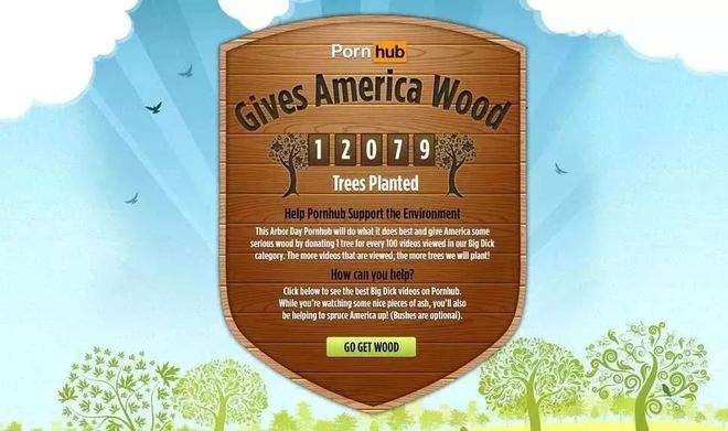 2015年,PornHub宣布了让地球更绿计划——每播100部片儿就给地球贡献一棵树,增加网络流量之余神不知鬼不觉地就把大家上P站的罪恶感给抹除了: