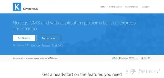 KeystoneJS是两个如前所述Express与Mongoose的Node.js CMS内容管理平台和Web应用领域平台。选用它能方便加速创建如前所述数据资料库驱动的网站应用领域,还提供更多了安全认证和会话管理、动态路由器、能够对密码自动加密、表 单校验处理、自动产生管理界面、Email邮件发送等。
