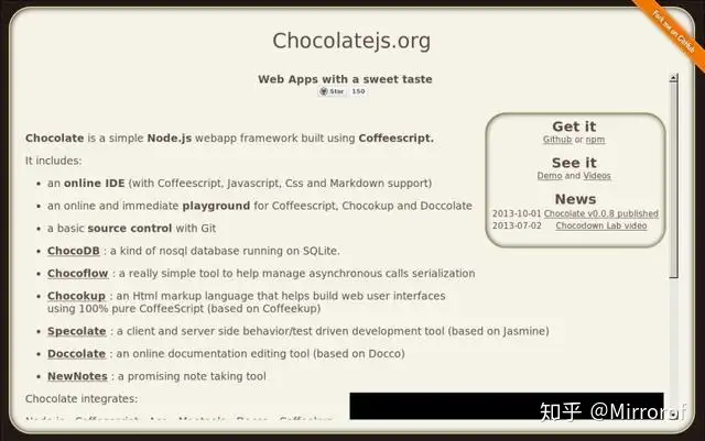 Chocolate.js是两个如前所述Node.js,选用CoffeeScript构筑的单纯的Web应用领域架构(集合)。 想自学该架构的同学能到这里对其展开全面了解,因此里面有大批的示例。