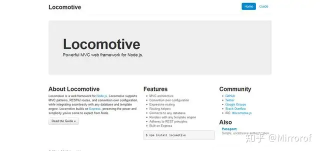 Locomotive是个强悍的Node.js的MVC架构,全力支持RESTfu,能无缝连接任何人数据资料库和模版发动机。Locomotive是在Express的基础上创建的,维持了Node.js 强悍而单纯的机能。