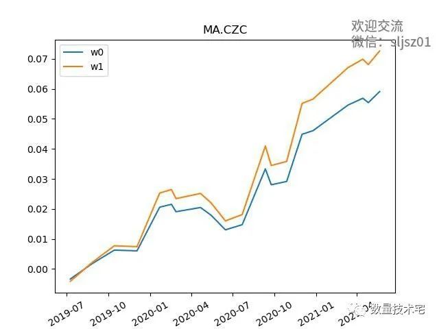 部分品种比较曲线,w0代表原始思路表现,w1代表经VAR调整持仓后思路表现: