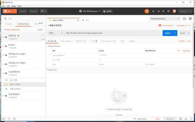 新建collection,接着在collection中新建A