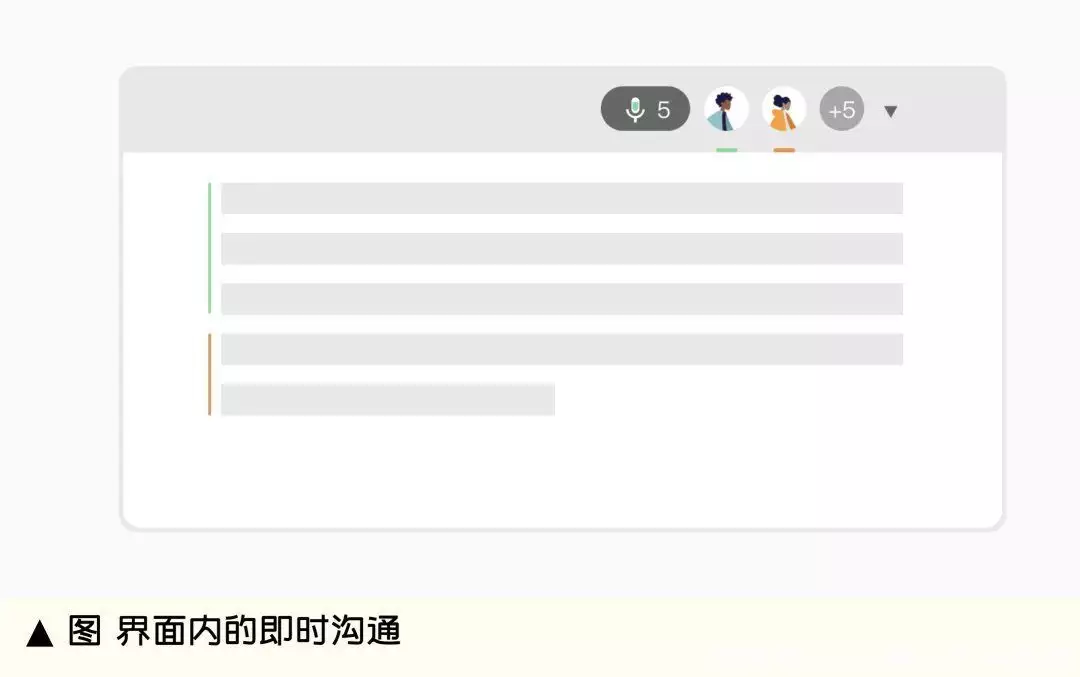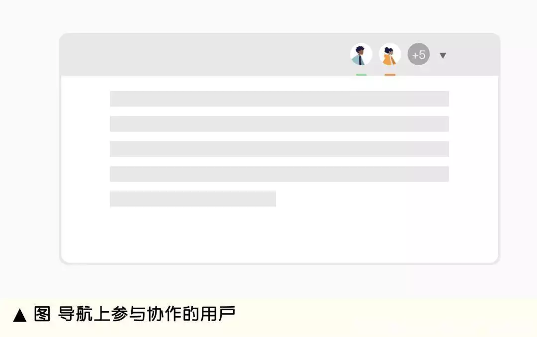他们可以结构设计一些视觉元素来关联采用者,让采用者了解组织工作界面中操作方式进行中的采用者都分别对应哪些视觉元素,能简约明晰帮助采用者了解其他采用者的状况。例如:在导航系统上透过头像、色块等关联关系动态展示当前组织工作介面内的采用者,让协同采用者掌握当前组织工作介面内“人”的基本情况,并承载所有协同采用者的管理、操作方式时间、位置记录。