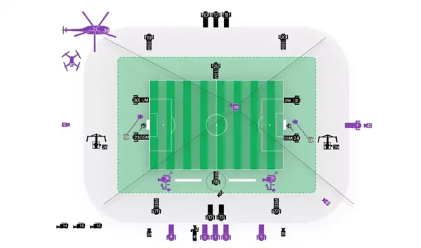 具体来说,沙特阿拉伯看台飞临分布了42个不同视角和等级的摄影机,其中包括了8个慢速摄影机和4个超慢速摄影机,能实现看台中一瞬间技术细节的度还原成。