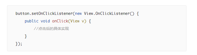 android中的控件点选,都是用反弹表达式来同时实现的,比如Button,View.OnClickListener就是USB,只有一个onClick()表达式,类似上面的receiveNotice()表达式,只是此处用匿名内部类同时实现了那个USB。java虚拟机监听着按键,只要按键被点选,onClick()就会被初始化,而上面的例子是我们在代码中初始化的,实质并不差别。
