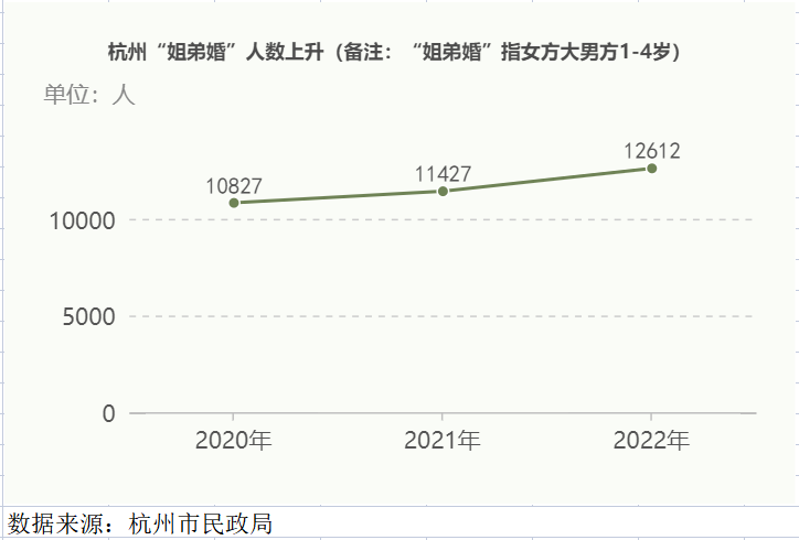 值得注意的是,“女大三,抱金砖”的现象如今在婚恋市场愈来愈多。近日,民政局公布的相关统计数据显示,数处“兄妹婚”的比率持续下降。苏州市婚姻关系登记大统计数据显示,2022年,苏州市共办理成婚登记65315对,其中女方大男方1-4岁的有12612人,而2021年女方大男方1-4岁的统计数据为11427人,2020年为10827人。