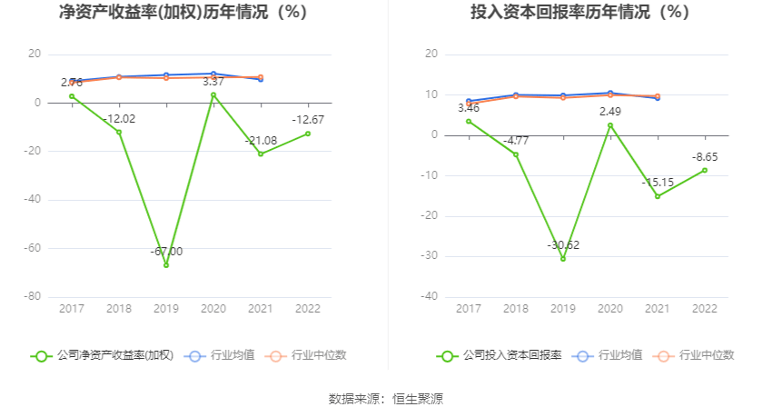 统计数据数据表明,2022年子公司加权平均净利润基准利率为-12.67%,较去年前两年前两年快速增长8.41个基点;子公司2022年投入资本回报率为-8.65%,较去年前两年前两年快速增长6.50个基点。