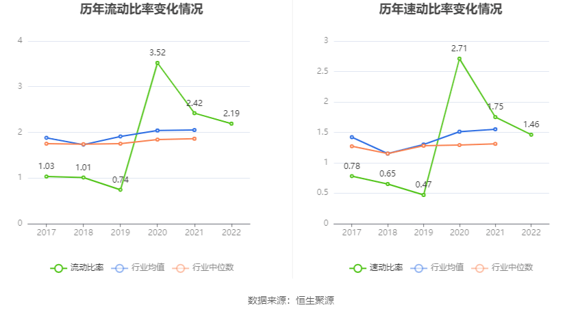 2022年,子公司流动比率为2.19,速动比率为1.46。