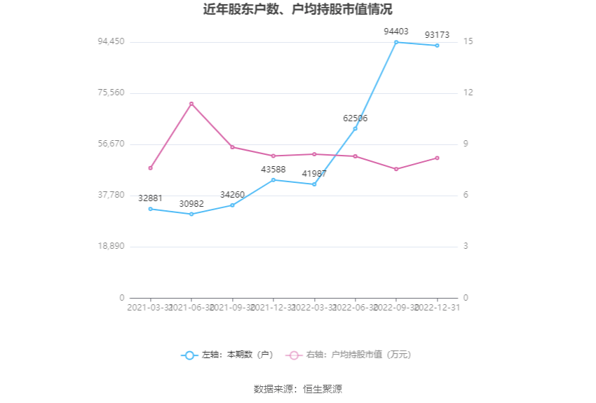 筹码集中度方面,截止2022年初,子公司股东总户数为9.32万户,较三季度末下降了1230户,降幅1.30%;户均持股市值由三季度末的7.56多万元下降至8.21多万元,增幅为8.60%。