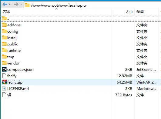 上传fecify初始加装包,并设置中文网站目录
