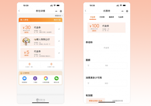 设置电子零件代金券也是同样,代金券的分类有代金券、打折券、服务券、礼品兑换券四大类,一般团体会员信息系统中都会有这几种设置,除此之外还有生效日期、有效期、是否可以叠加采用等限制。