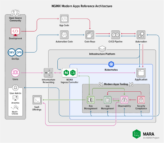 他们希望竭尽全力开展试验,帮助核心开发者们更高效、更轻松地部署现代应用程序。在去年的 Sprint 2.0 上,他们发布了 NGINX 现代应用程序参考架构(MARA),相应的 1.0.0 正式版最近也早已发布。MARA 是一套精心设计而成的工具堆栈,其中也包括 Kubernetes,他们希望通过这样的配置轻松实现基础设施与应用程序架构的“即标识符”式部署。只需单击几下,用户就可以配置并部署 MARA 参考架构,并享用其中集成的一切制造级云原生环境创建选项——安全可靠性、日志记录、网络、应用程序服务器、配置和 YAML 管理等,可谓无所不包。
