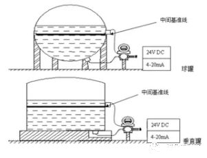 将两个小巧的外测母吕氏计超声波传感器一个安装在罐体的底部,另一个安装在罐体的侧壁来进行密度变化的补偿。