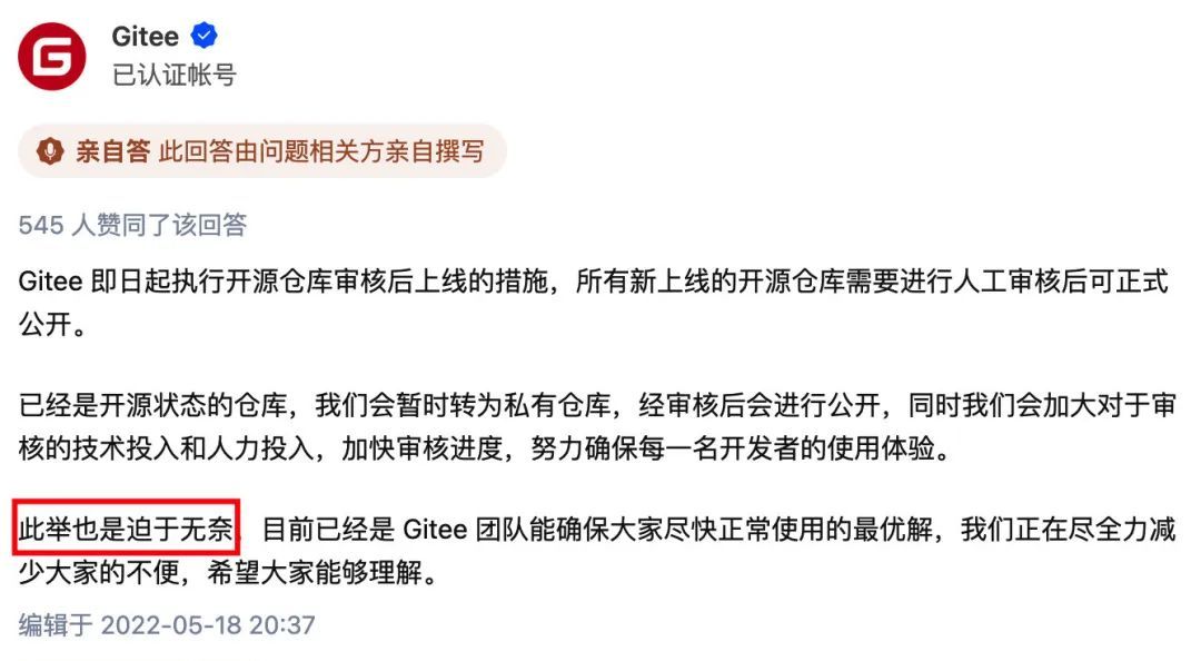 说白了,Gitee 平台之所以那么做,的确是上面有要求了。