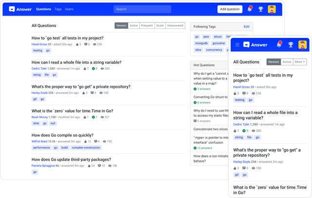 Menu TitleFirst Menu ItemSecond Menu ItemThird Menu Item 门牌号:github.com/saadeghi/daisyuiGo 工程项目12、answer:这款开放源码的问答社区。采用 Go 词汇编写的问答社区,全力支持积分、提问、回答、标签等功能,部署简单。