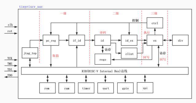 门牌号:github.com/yarrick/iodine4、tinyriscv:从零开始写 RISC-V 处理器。该工程项目是采用 Verilog 词汇同时实现一个单核 32 位的小型 RISC-V 处理器核,包涵全部代码和详细的教程。RISC-V 是一种开源指令集架构,它允许任何人设计、制造和销售 RISC-V 芯片和软件。