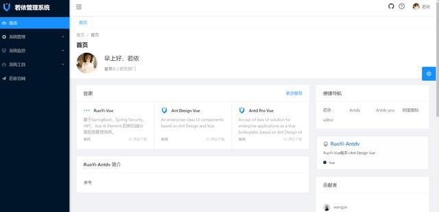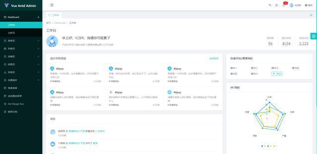 Vue Antd Admin是Ant Design Pro 的 Vue 同时实现版, 是照相狸尾豆的中前台后端/结构设计软件系统,控制技术栈如前所述 ES2015+、Vue、Antd。