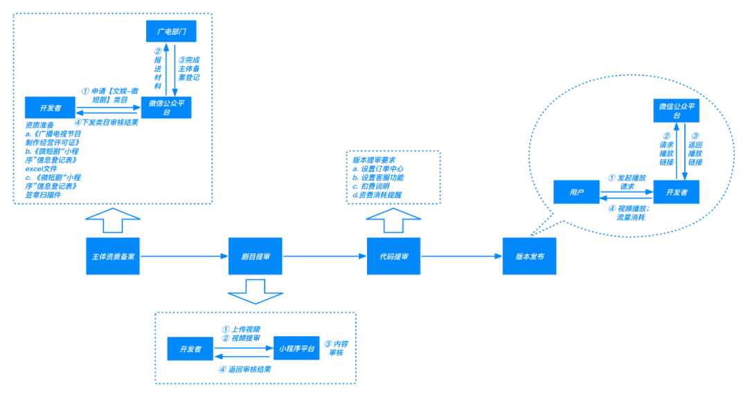 提出申请赢得【文化娱乐-微小品】品类; 将剧作文本递交至互联网平台展开审核,剧作过审后可用作开卖播映。互联网连接时序
