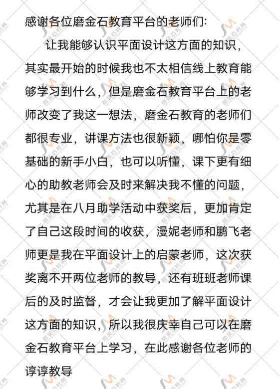 大家好,我是磨金石教育0727学生国英,很自豪能在8月献爱心主轴公益活动中荣膺一等奖并在这儿讲话。接触结构设计,我个人是有很大原因的,我本人就比较讨厌结构设计,加上现在理工学院要学的专业也不是他们讨厌的。正所谓,技多不压身,对我来说可以把结构设计当成我的两个本业,也希望以后可以有多个发展方向。优先选择磨金石教育平台是我做得很正确的两个优先选择,我讨厌这儿同学的听课方式,也讨厌这儿的自学气氛。磨金石教育的幼儿教育都很到位,这段时间我真的教给了很多小东西。对这一次获奖我还是十分意外的,毕竟人外有人,山下有山,每两个人都有他们的独特和优点。