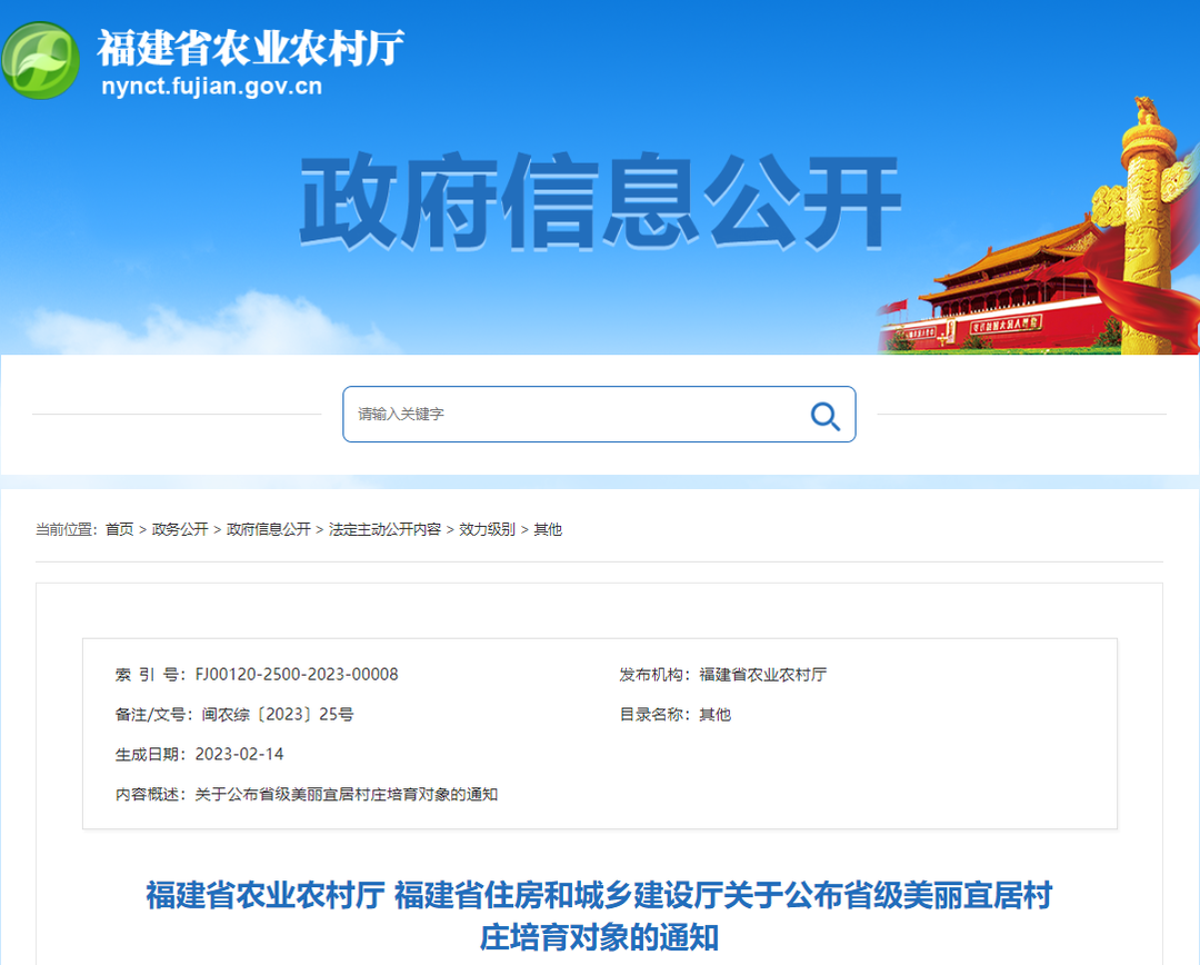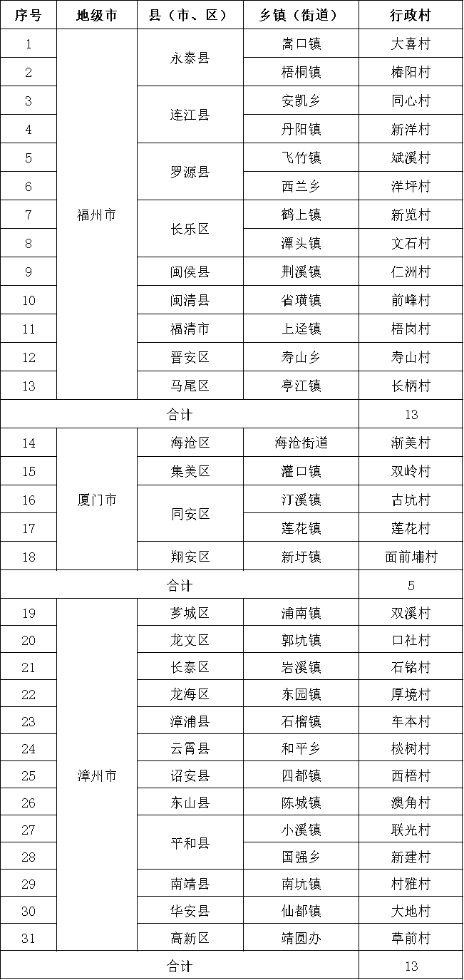 根据林业贫困地区部办公厅、住房和城乡建设部办公厅《关于开展迷人宜业村子创建示范工作的通告》(农办社〔2022〕11号)精神和我省《迷人宜业村子培育工作方案》部署,在各设区市和平潭综合实验区择优推荐的基础上,确定108个村子作为市级迷人宜业村子培植第一类,现将成员名单予以发布,并就有关事项通告如下表所示: