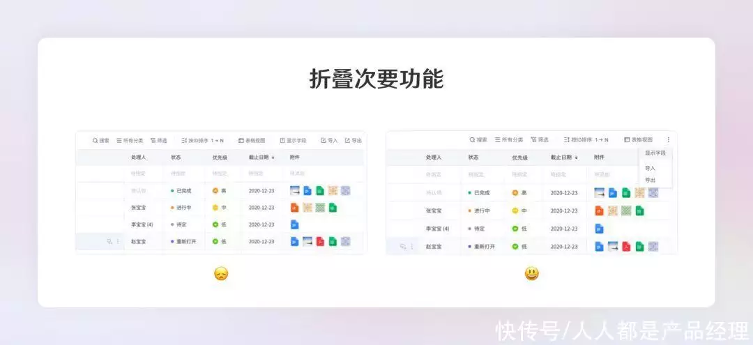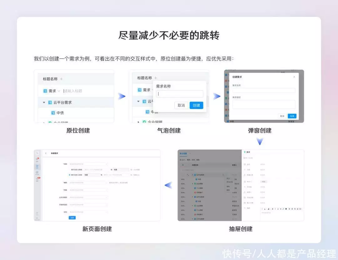 用户操作过程尽量减少跳转,以实现可视化减步长,从而使用户操作更高效率轻量。例如能用原位操作就不考虑进行收起;能用进行收起就不必气泡…依次类推(优先级从高到低:原位>进行收起>气泡>弹窗>抽屉>新网页)