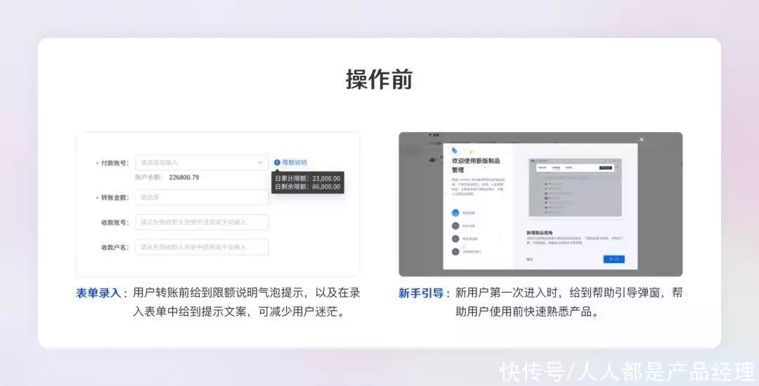 在用户操作前给到合适的引导与协助,有效减少用户迷茫感。