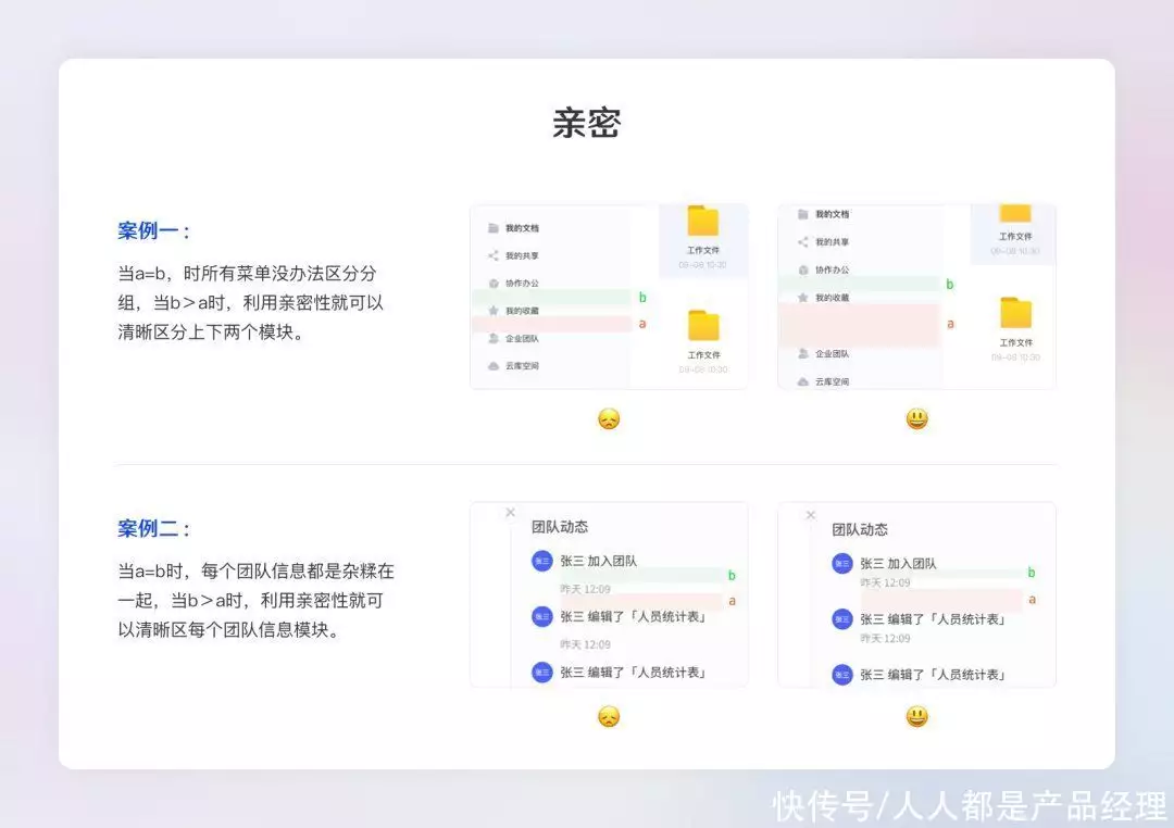 如果信息之间关联性越高,它们之间的距离就应该越接近,也越像两个视觉单元;反之,距离就应该越远,也越像多个视觉单元。亲密性的根本目的是实现组织性,让用户对网页结构和信息层次一目了然。