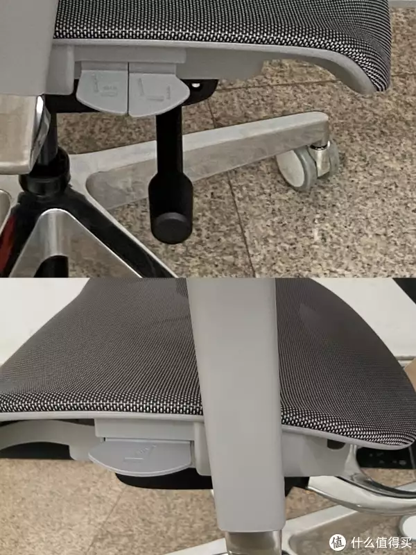对了,它还有个我之前很少见到的独特设计:椅背勾手松紧度一共有四个档位,凭借椅座下方的旋钮就可以一键调节。