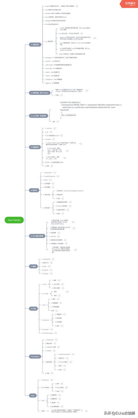 提供了多张思维导图辅助你深入了解 Vue | Vue-Router | Vuex 源代码架构。