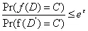 其中,D和D分别指交界处的统计数据集(差异只有一条历史记录),f(.)是这种操作或演算法(比如说查阅、求平均、八倍等)。