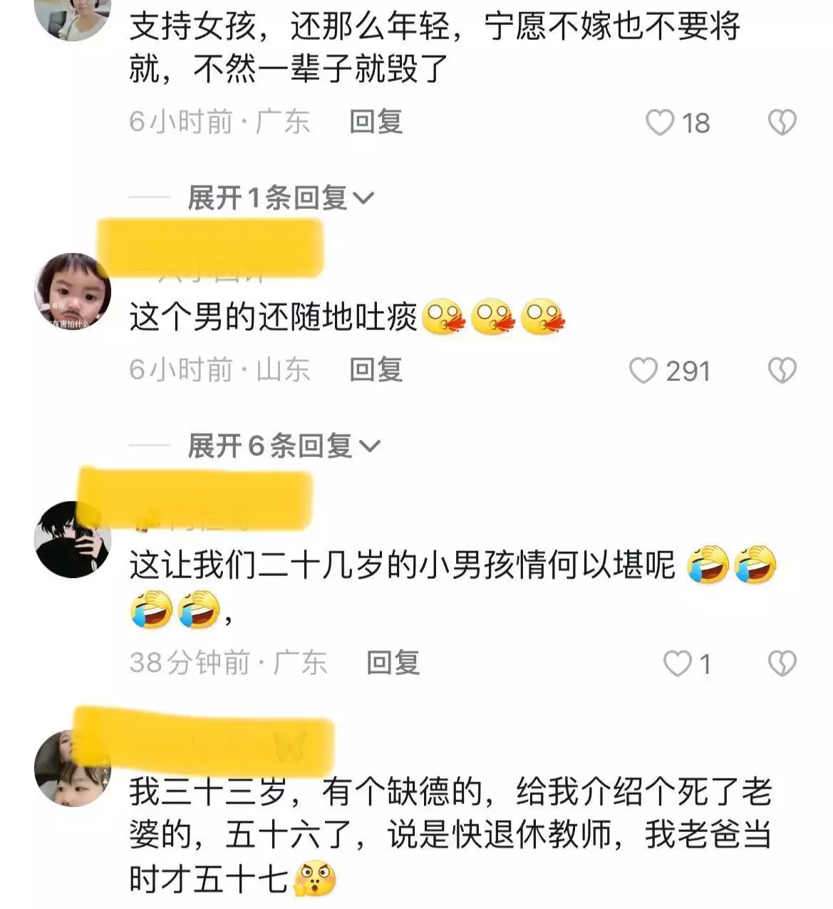 甚至还有网民说,这双亲也是拎不清,一点都不了解交友市场的情况。现在男多女少,有儿子根本不愁嫁,为何不许儿子慢慢挑一个她们喜欢的呢?为何要委屈儿子呢?这不是为儿子好,这是害儿子啊。