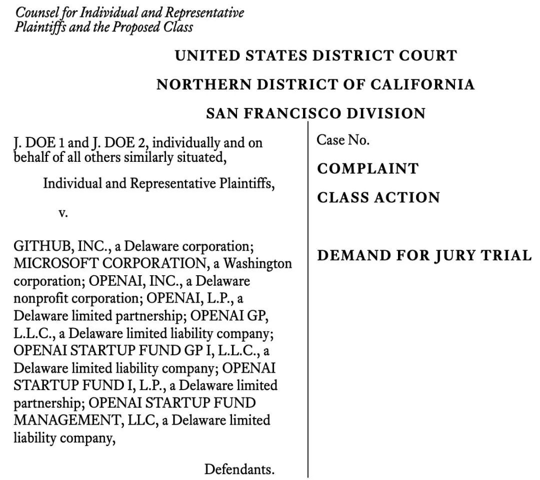 https://www.prnewswire.com/news-releases/joseph-saveri-law-firm-and-matthew-butterick-file-class-action-lawsuit-against-github-microsoft-and-openai-over-violations-of-open-source-licenses-arising-from-github-copilot-an-ai-based-product-301668255.html