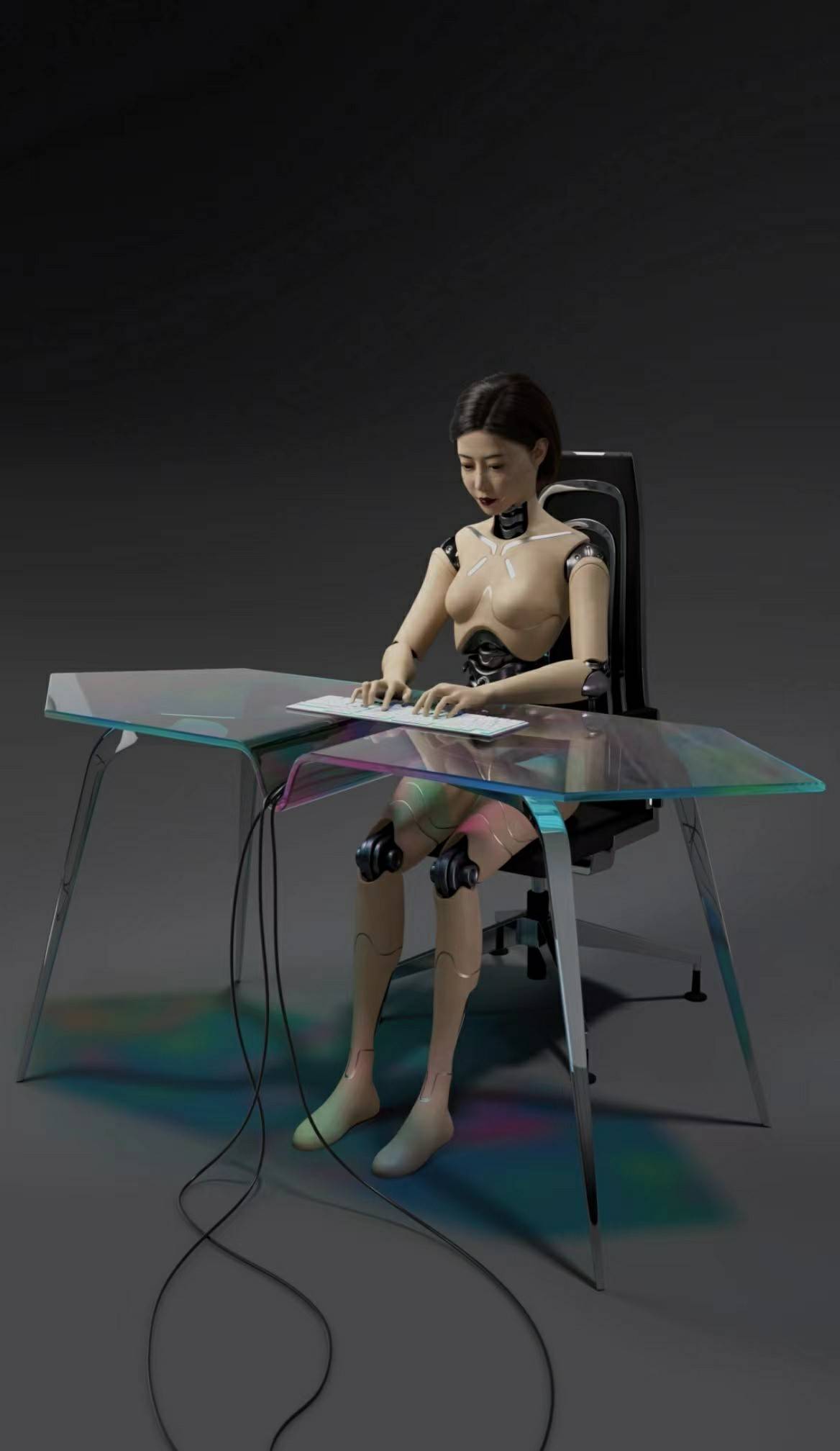 《创世纪》这件器作品由一块萤幕和两台印表机共同组成。萤幕中Nomeny以位数人形像亮相,该形像在能保持女演员本身脸孔的与此同时,身体却由明显的机械和金属共同组成。而这样一个拟人却在不停敲击按键,做着人类文明做的事,充满著一种“似人而这些行为,似现实生活而非现实生活”的释放出来感。这与近期火爆的“元银河系”概念交相辉映,也嘲讽了当今社会交互式与现实生活间的错位。