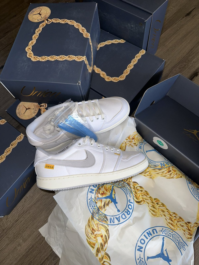 最终,鞋盒各方面和衬纸也是经过重新的设计,夸张的大金链子和烫金的Union铭牌,规格确实不低。