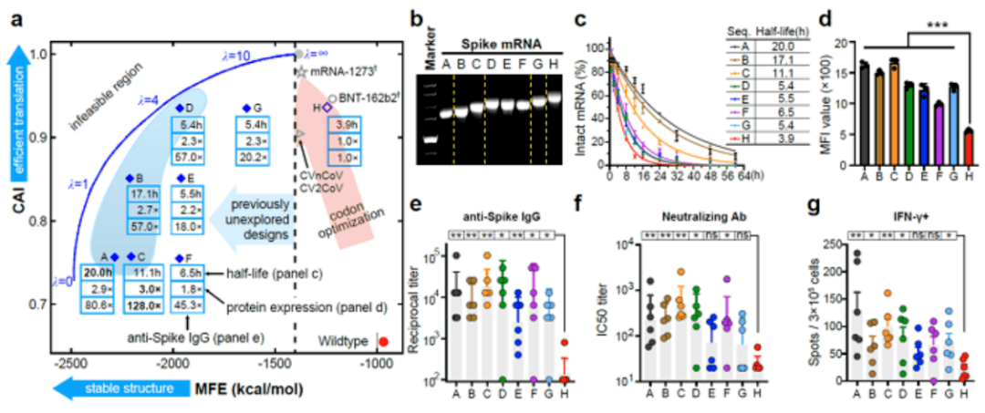 图丨LinearDesign 演算法结构设计的新冠 mRNA 抗生素的