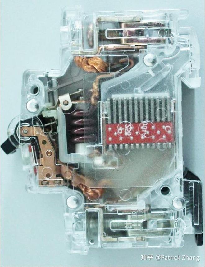 断路器的热脱扣器与传动装置为保护用的热继家用电器其基本原理是一致的,都是双金属片驱动。右图是我的课件摘录: